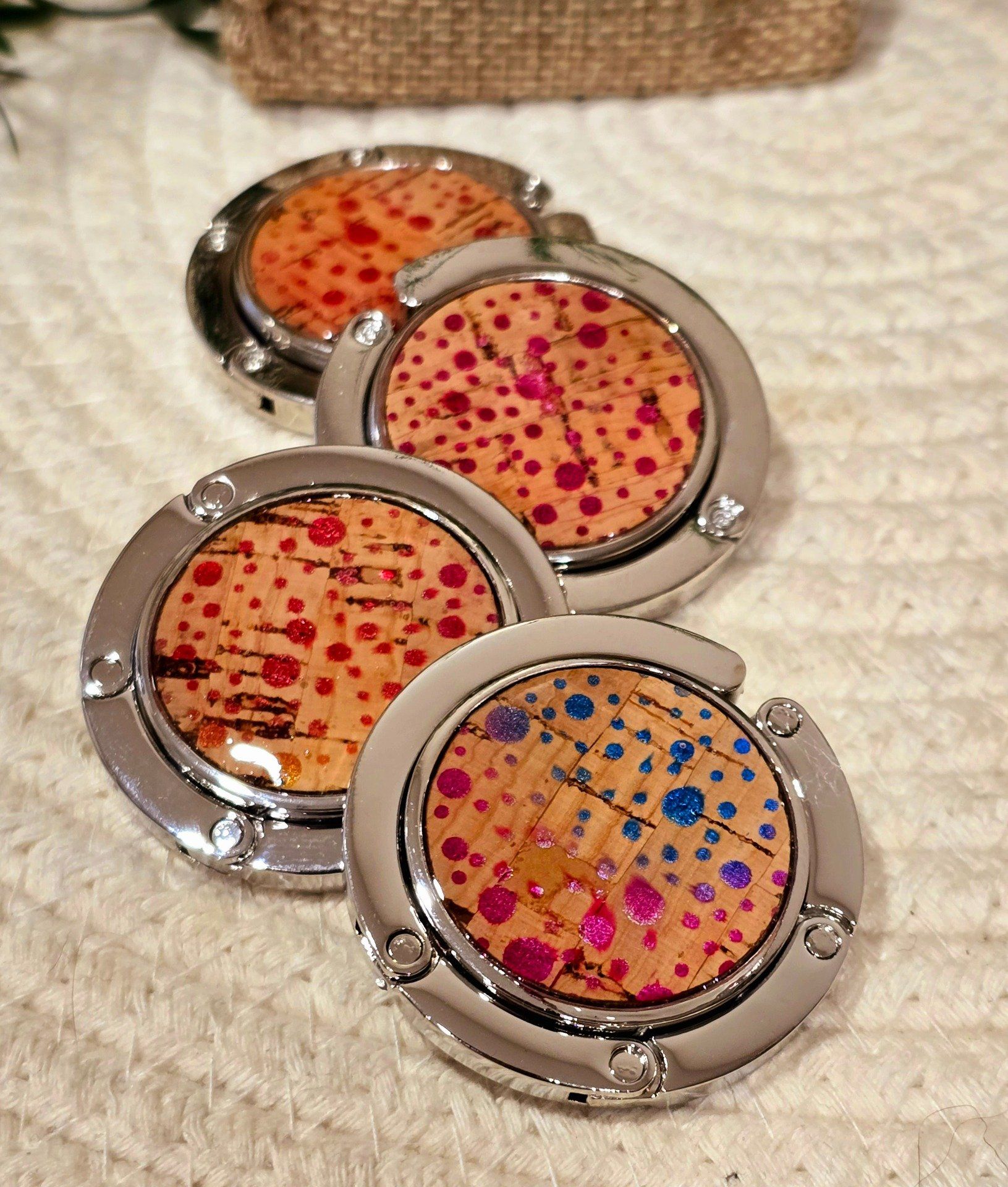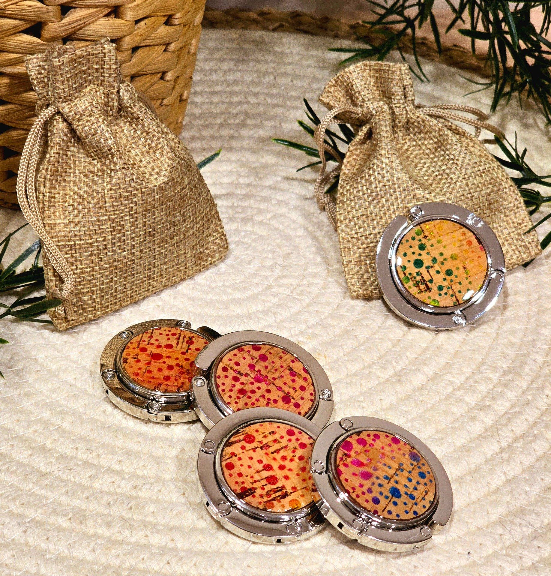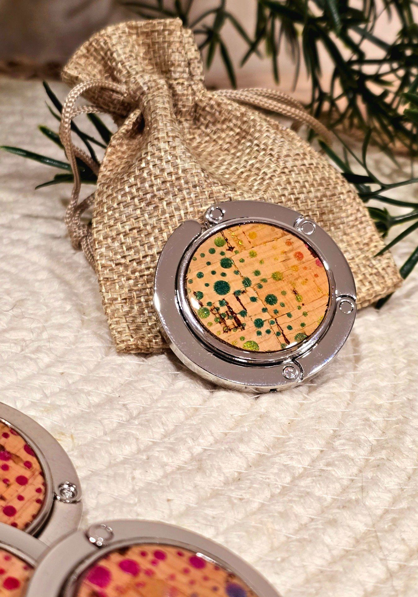 Découvrez cet accessoire alliant esthétique et fonctionnalité, un accroche-sac innovant revêtu de liège et résine.