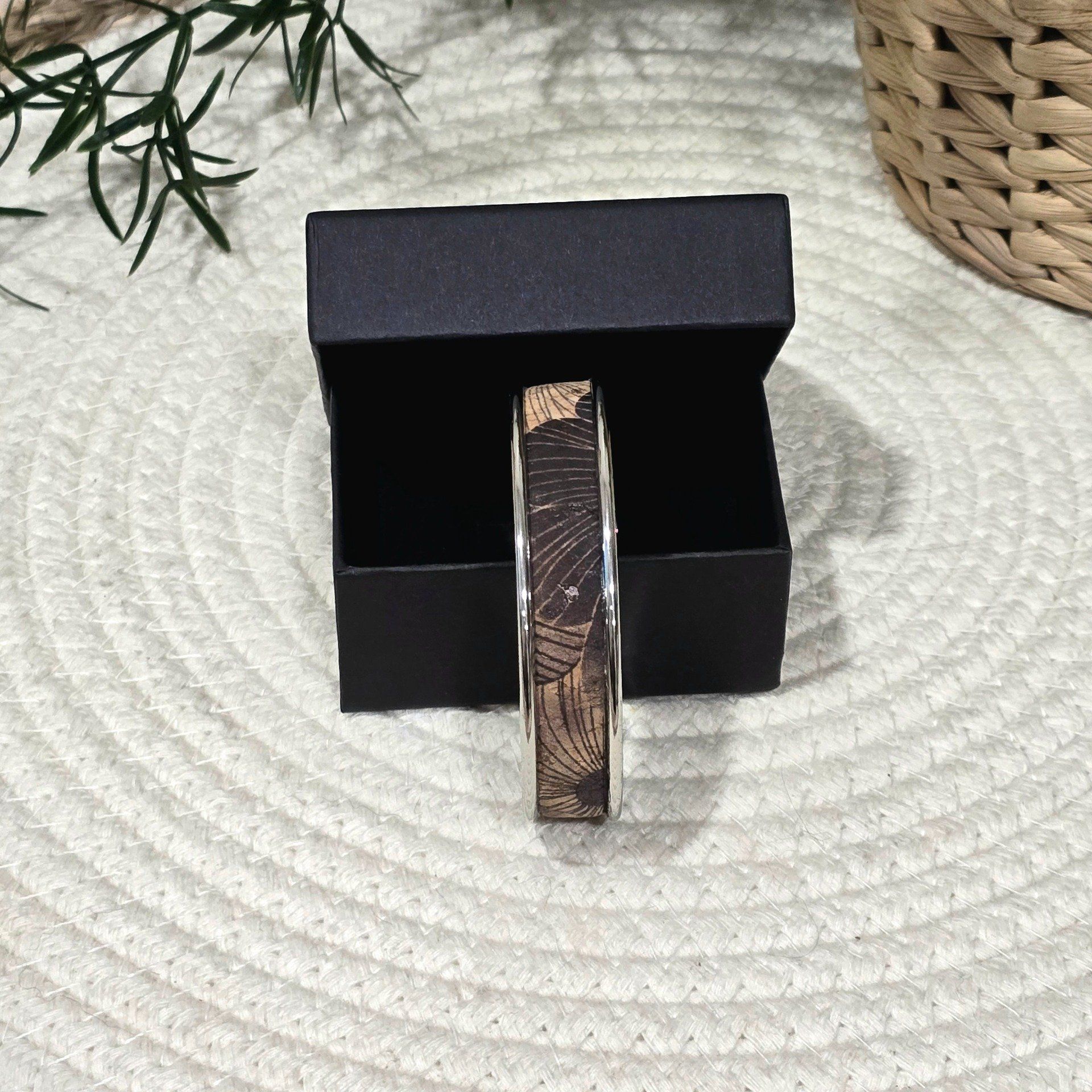 Bracelet manchette 10 mm argenté et liège imprimé fleurs