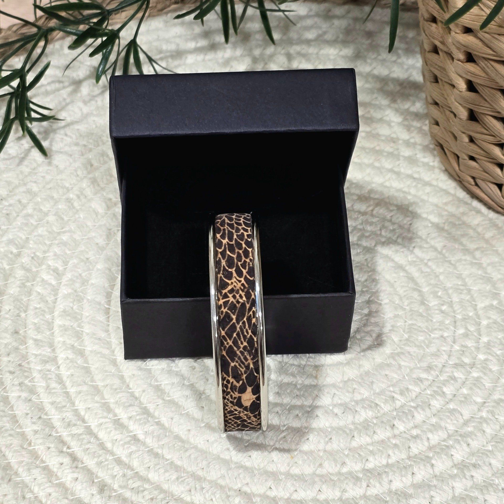 Bracelet manchette 10 mm argenté et liège imprimé peau de serpent