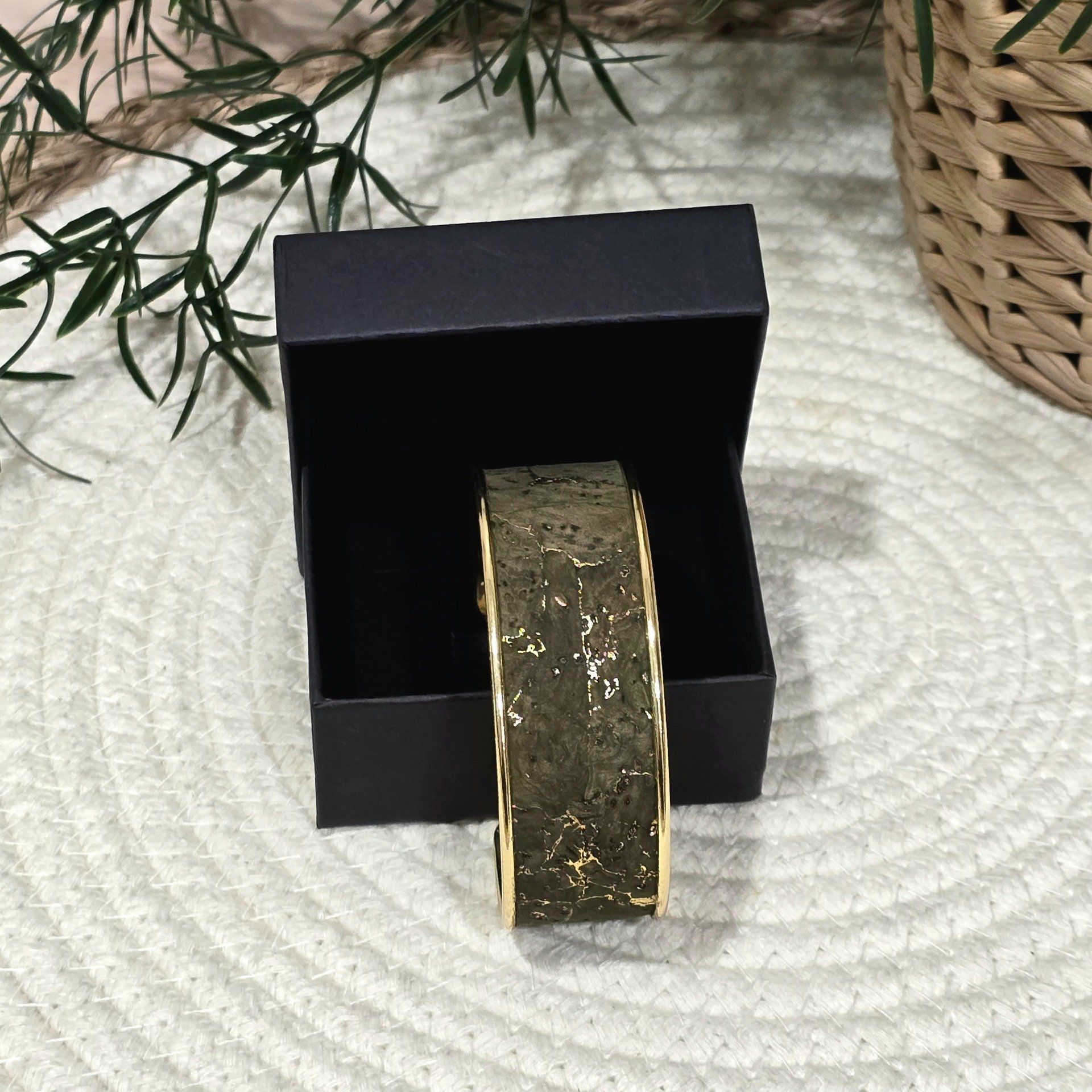 Bracelet manchette 20 mm liège kaki éclats dorés