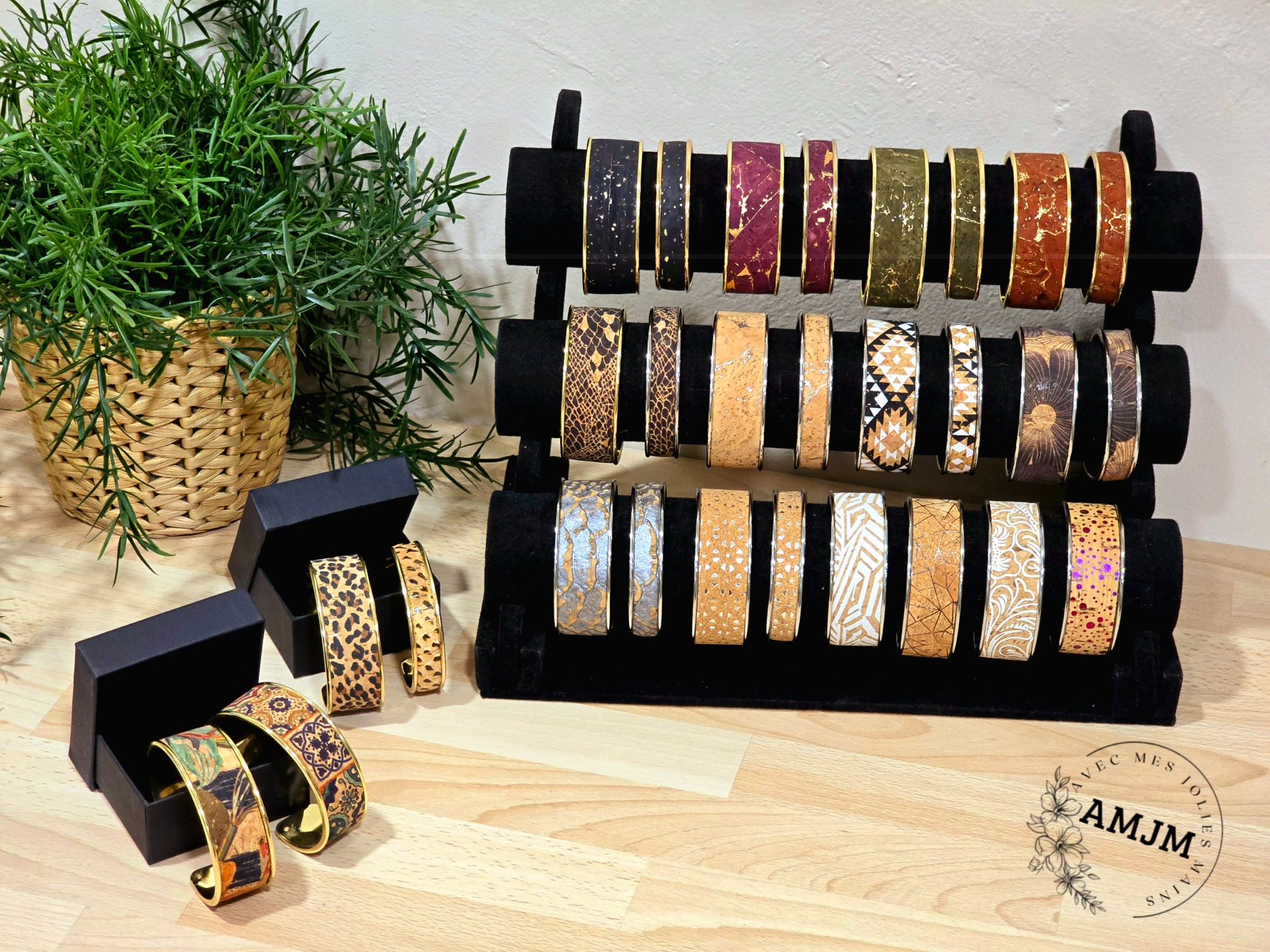 Bracelet manchette 20 mm orné de liège lit de vin et doré