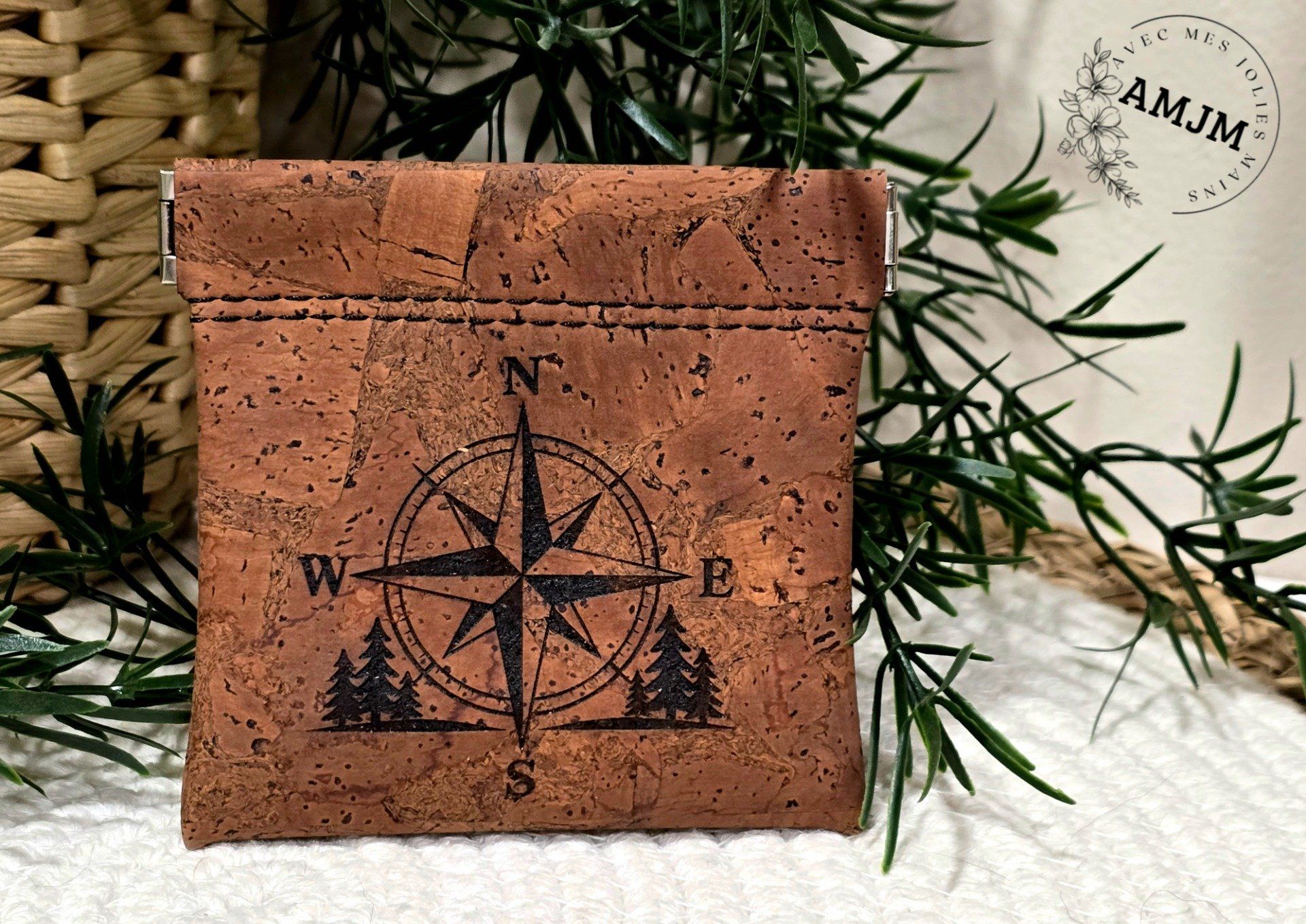Porte monnaie en liège gravé "boussole"