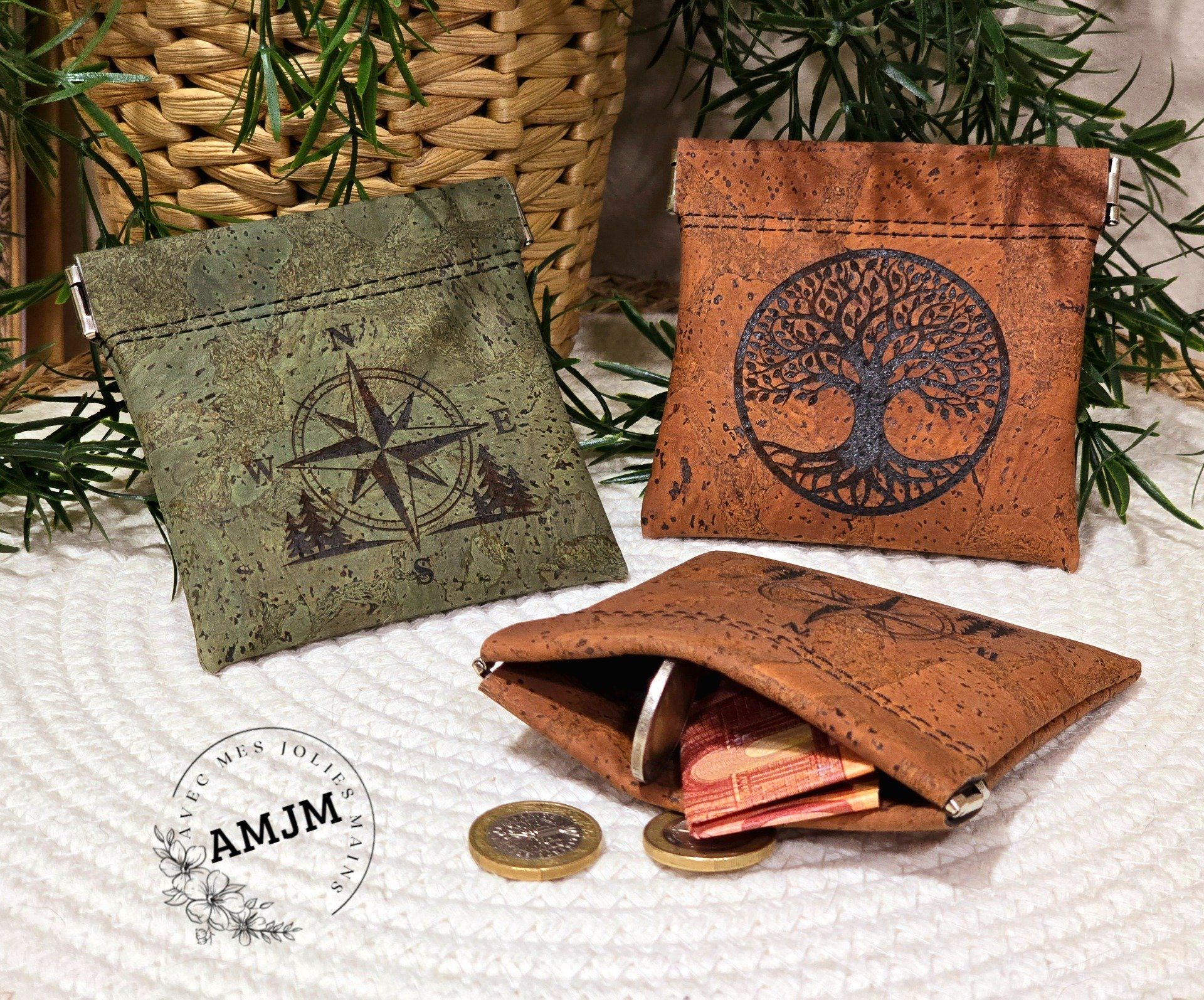 Découvrez ces adorables porte-monnaie en liège gravés parfait pour se glisser facilement dans une poche ou un sac.