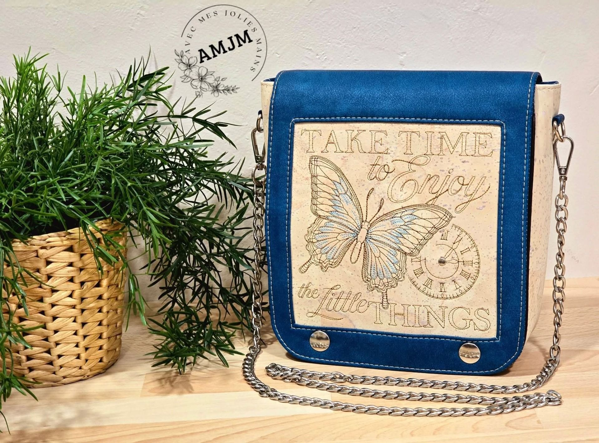 Avec ses dimensions pratiques de 23 x 23 x 9 cm, le Sac Astraé est parfaitement adapté pour accueillir vos essentiels tout en ajoutant une touche de style à votre tenue. Son rabat est sublimé par une magnifique broderie représentant un délicat papillon, accompagné du message inspirant « Prendre le temps d’apprécier les petites choses ». Ce détail poétique vous rappelle l'importance de savourer les petits bonheurs de la vie.