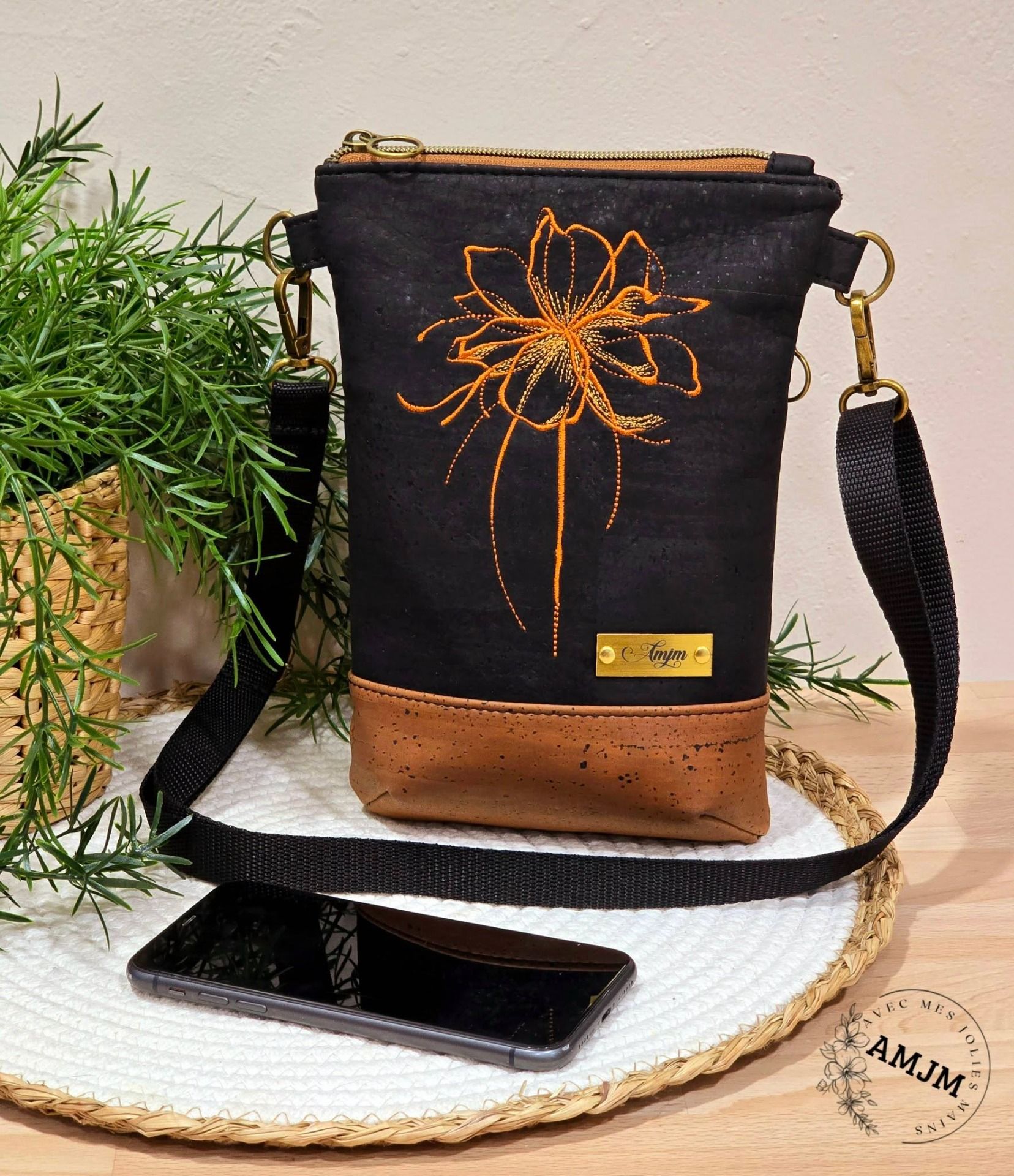Réalisé avec soin à partir d'un coupon de liège naturel brodé par mes soins, ce sac se distingue par sa jolie fleur qui ajoute une touche d'originalité et de raffinement.