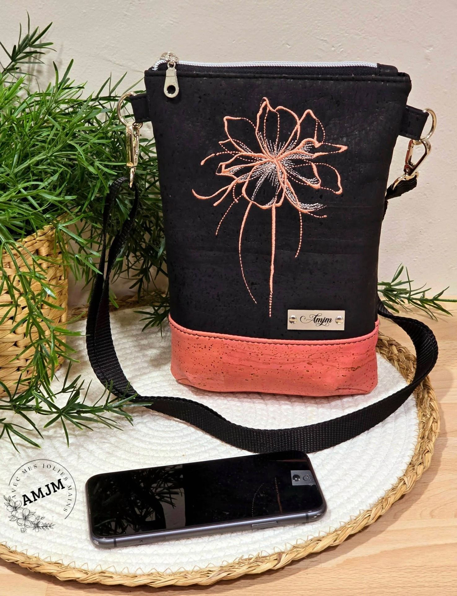 Réalisé avec soin à partir d'un coupon de liège naturel brodé par mes soins, ce sac se distingue par sa jolie fleur qui ajoute une touche d'originalité et de raffinement.