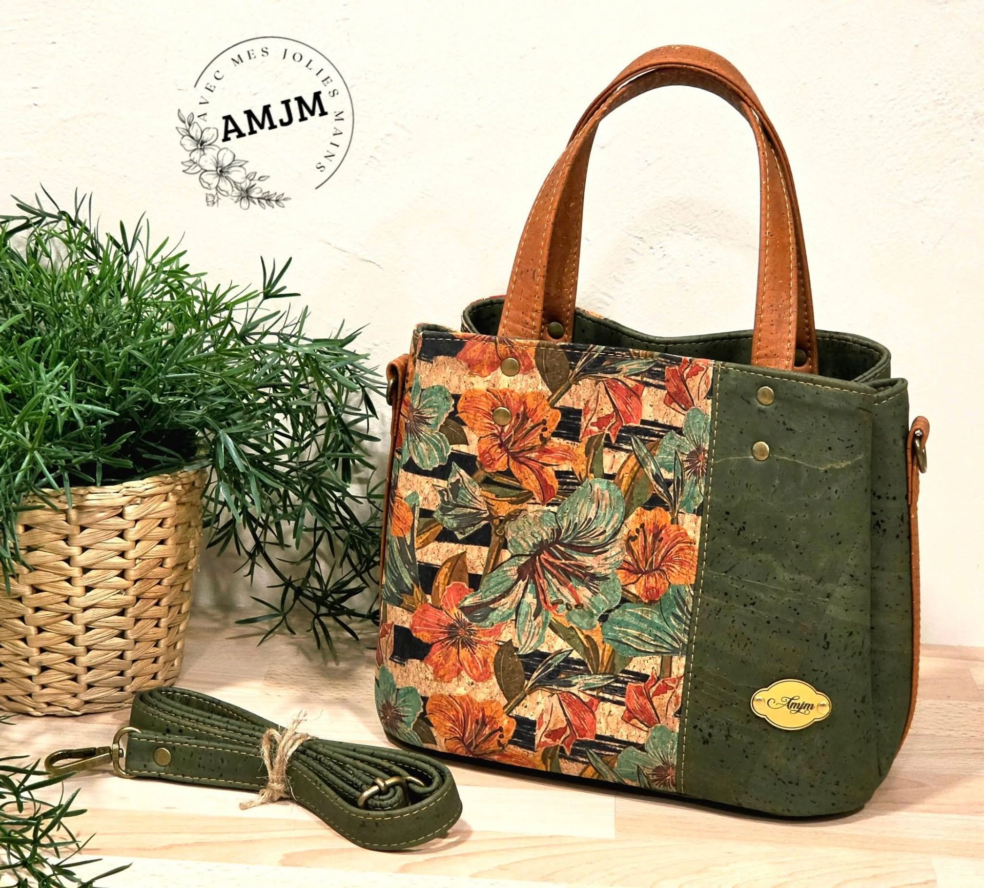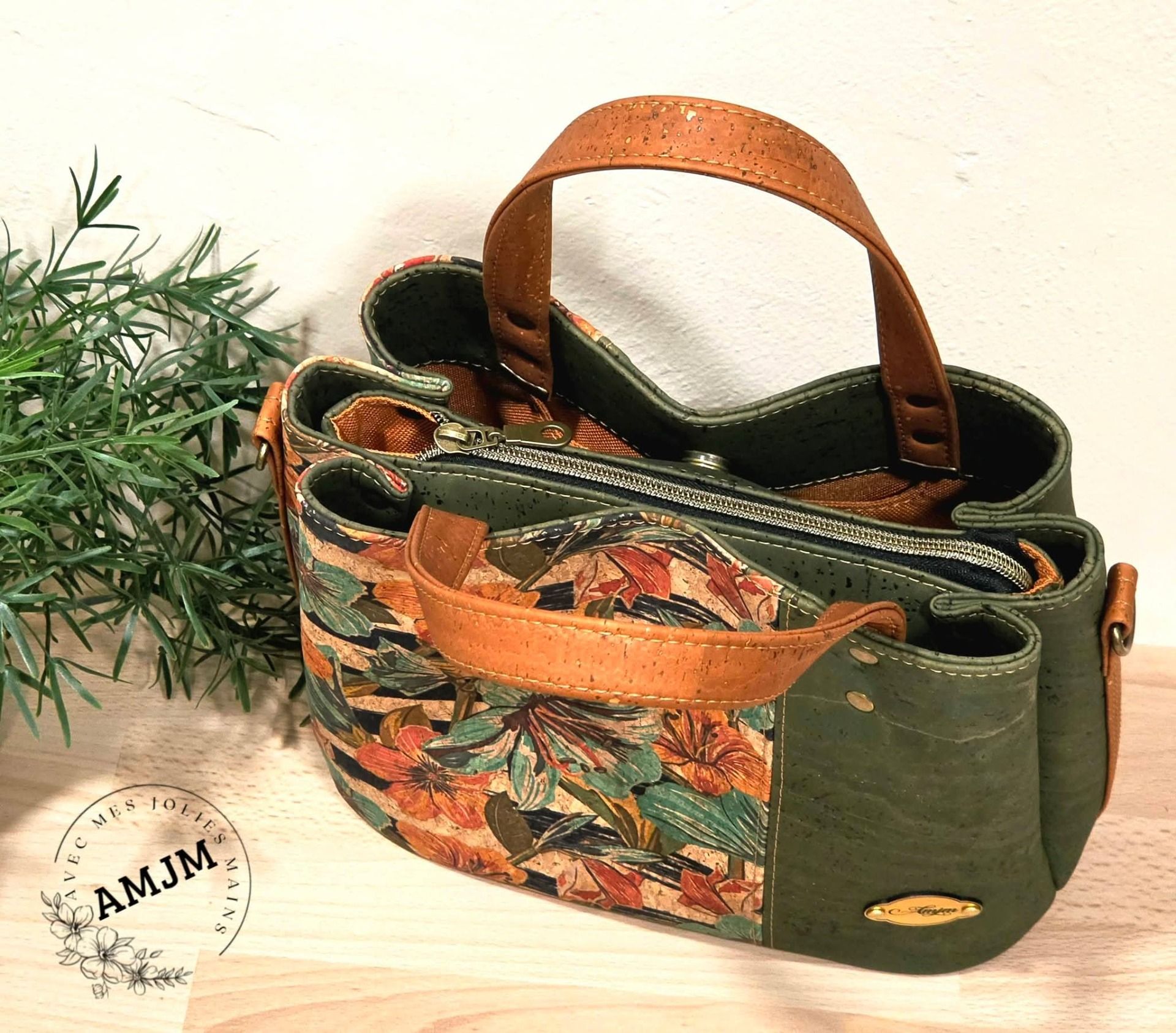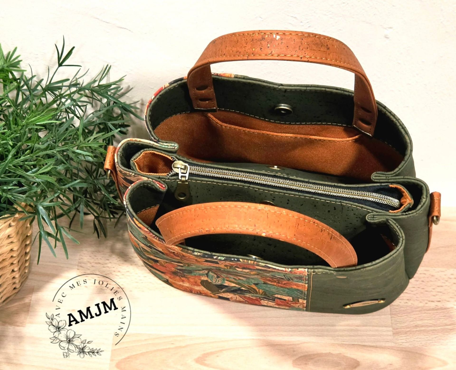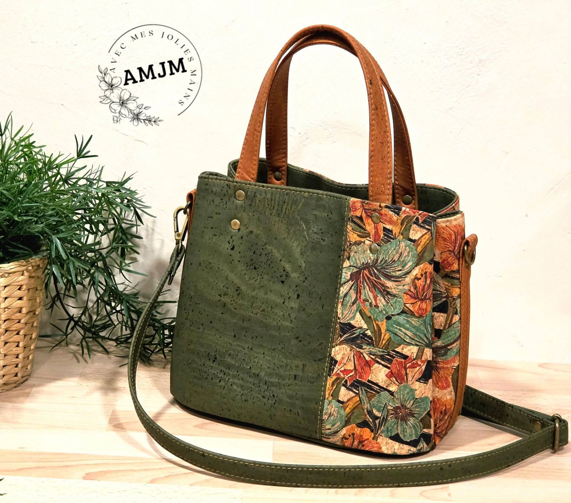 Sac Soraya en liège fleuri et liège kaki