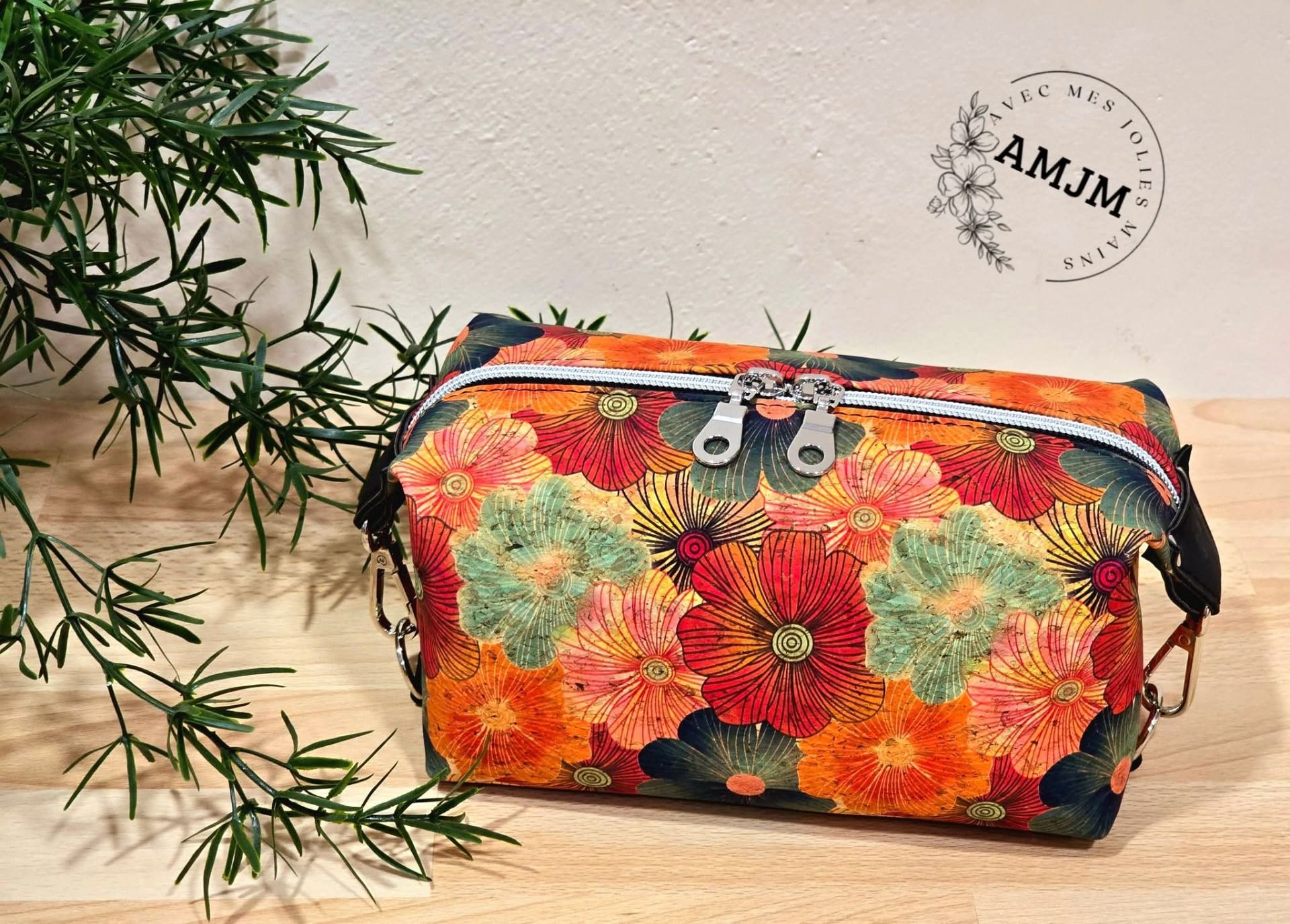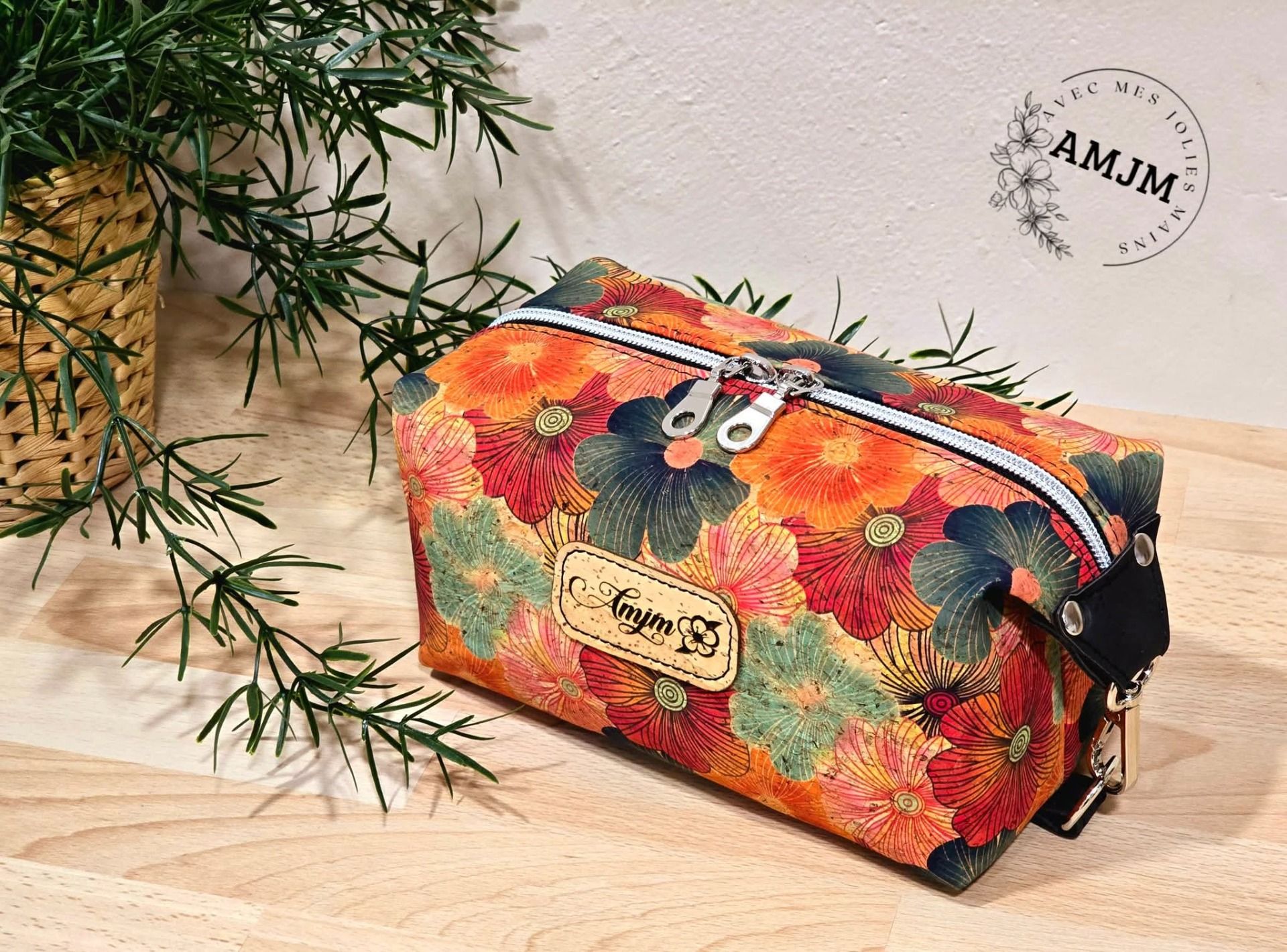 Trousse carré en liège fleuri très élégante